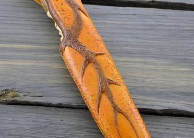 Handle of stabilized birshburl and natural sibirian found mammoth tusk and silver.