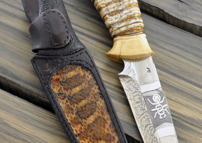 Sheath: Shaft leather whith inlay of diamondback rattlesnake