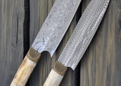 Blades by Robert Mattsson in Damasteel stainless damaskus.