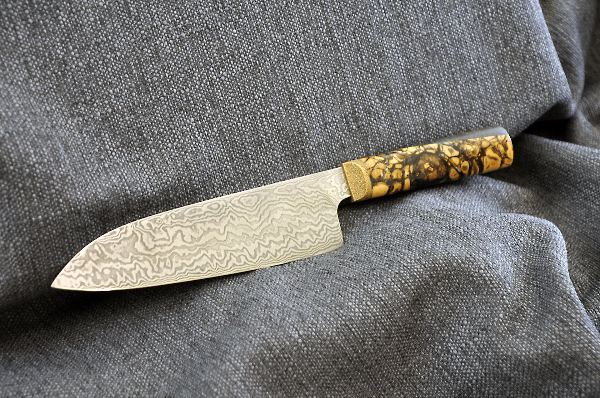 Sharp Coffee Blade by Magnus Jönsson, carbon steel random damaskusHandle of stabilized mammoth tusk and bronzeSheath: No sheath Buy a knife and other questions